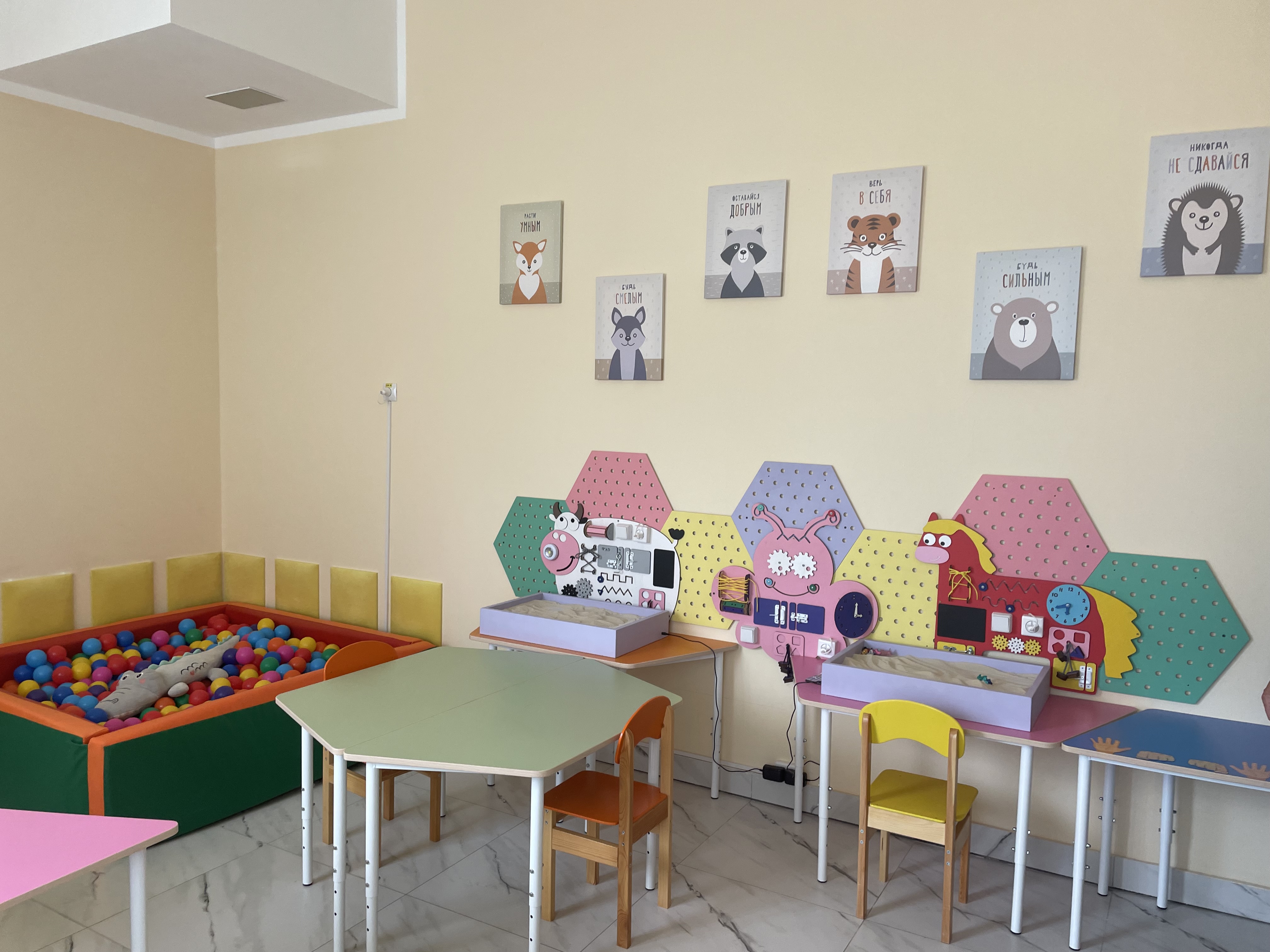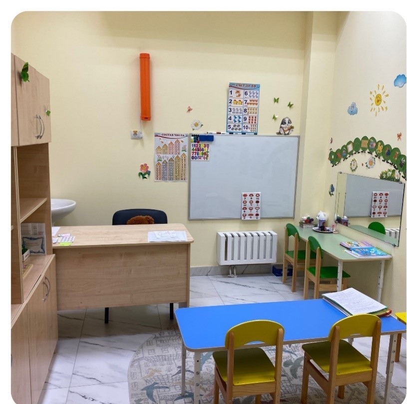 Оснащение: диагностический и консультативный материал, рабочая документация, коррекционно-развивающие игры, сенсорный стенд, мягкие модули; рабочий стол, компьютер, планшетный ПК, детский стол для индивидуальной работы с воспитанниками.