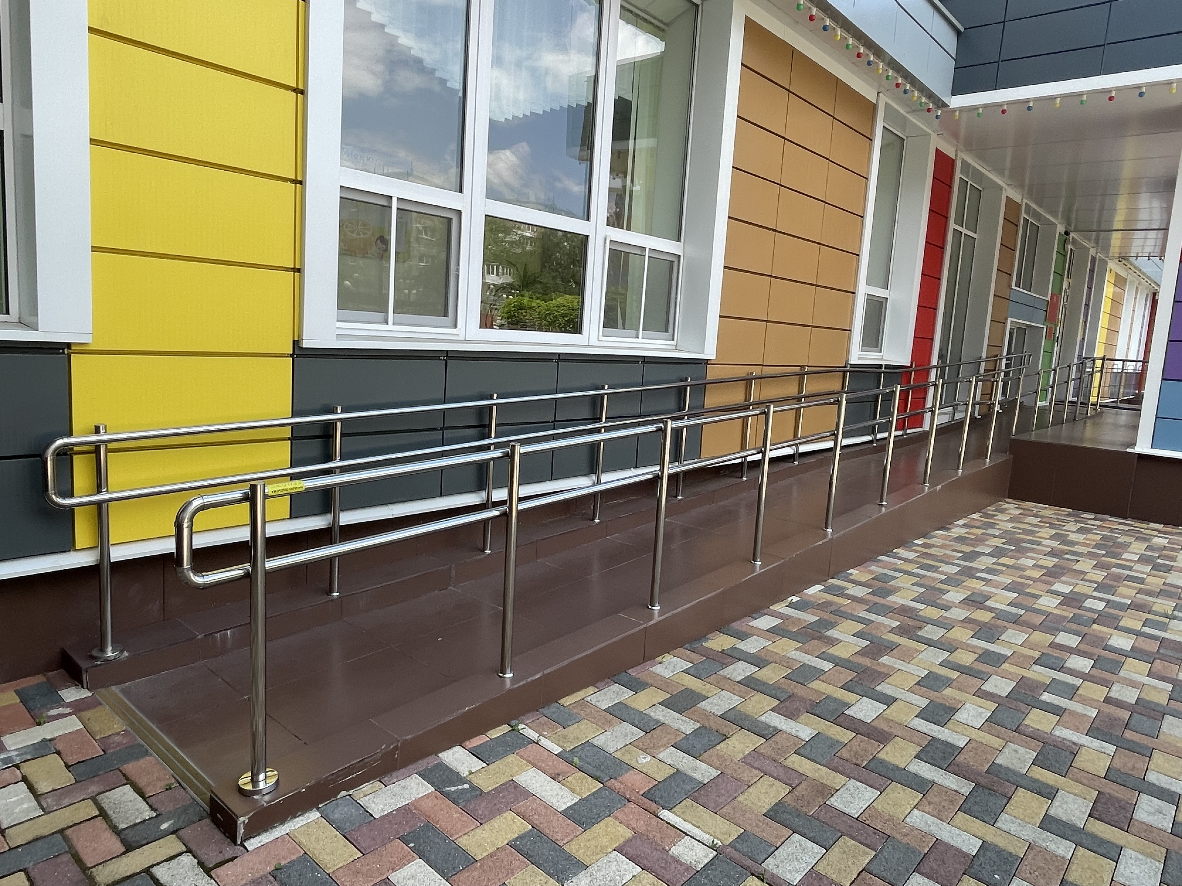 Для обеспечения доступа в здание образовательной организации инвалидов и лиц с ограниченными возможностями здоровья в учреждении имеются поручни, пандусы, достаточная ширина дверных проемов в стенах, площадок, лифт для маломобильных граждан. Входная площадка имеет навес, кнопку вызова при входе, дублирование необходимой для инвалидов, имеющих стойкие расстройства функции зрения, зрительной информации – звуковой информацией, а также надписей, знаков и иной текстовой и графической информации – знаками, выполненными рельефноточечным шрифтом Брайля и на контрастном фоне.
